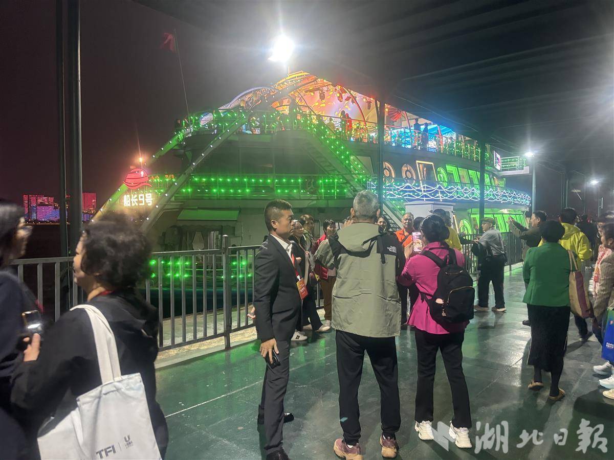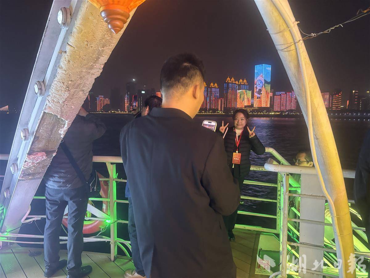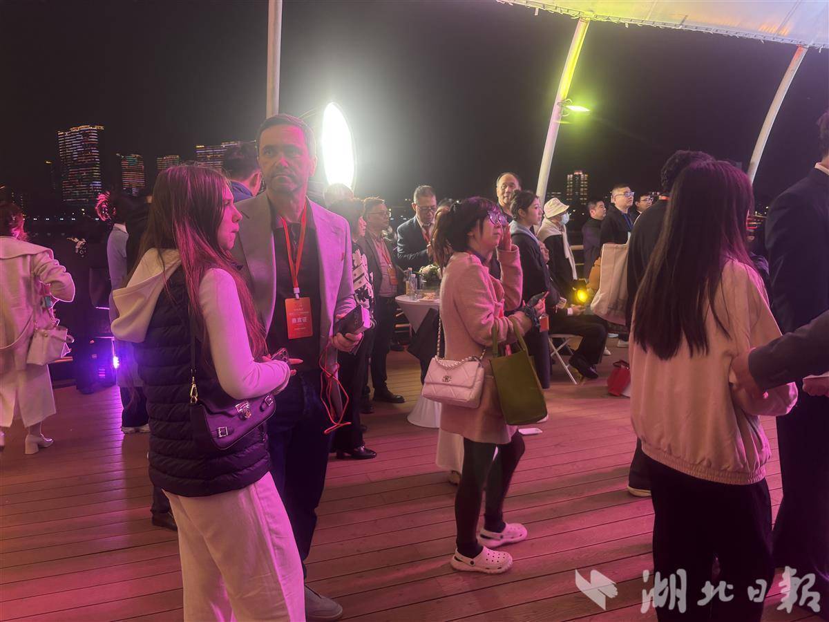 活动现场,中外嘉宾沉浸式体验了素有“万里长江第一屏”美誉的长江灯光秀。浩渺江水与璀璨灯光交相辉映,黄鹤楼、武汉长江大桥、鹦鹉洲长江大桥、龟山电视塔、晴川桥等标志性地标在夜色中流光溢彩,两江四岸的壮阔美景尽收眼底,让嘉宾们直观感受武汉独特的城市魅力与文化底蕴。
